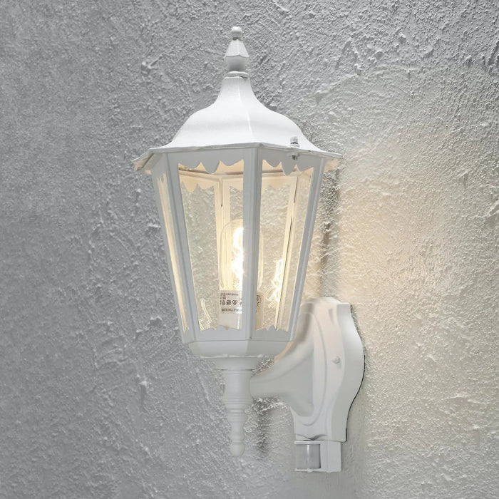 Firenze Up Light PIR M. White - Part of the Konstsmide Outdoor Lighting Basic RangeFirenze 7236 Lacquered aluminium / clear glass / with motion sensor